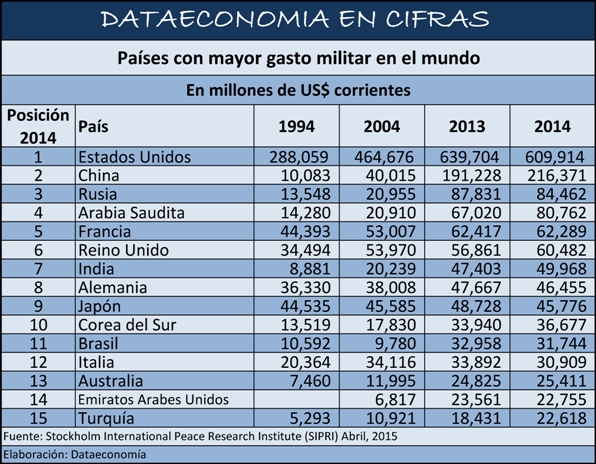 Gráfico Países con mayor gasto militar como porcentaje del PIB