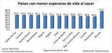 Gráfico Países con menor crecimiento de Indice de Desarrollo Humano 1990-2014