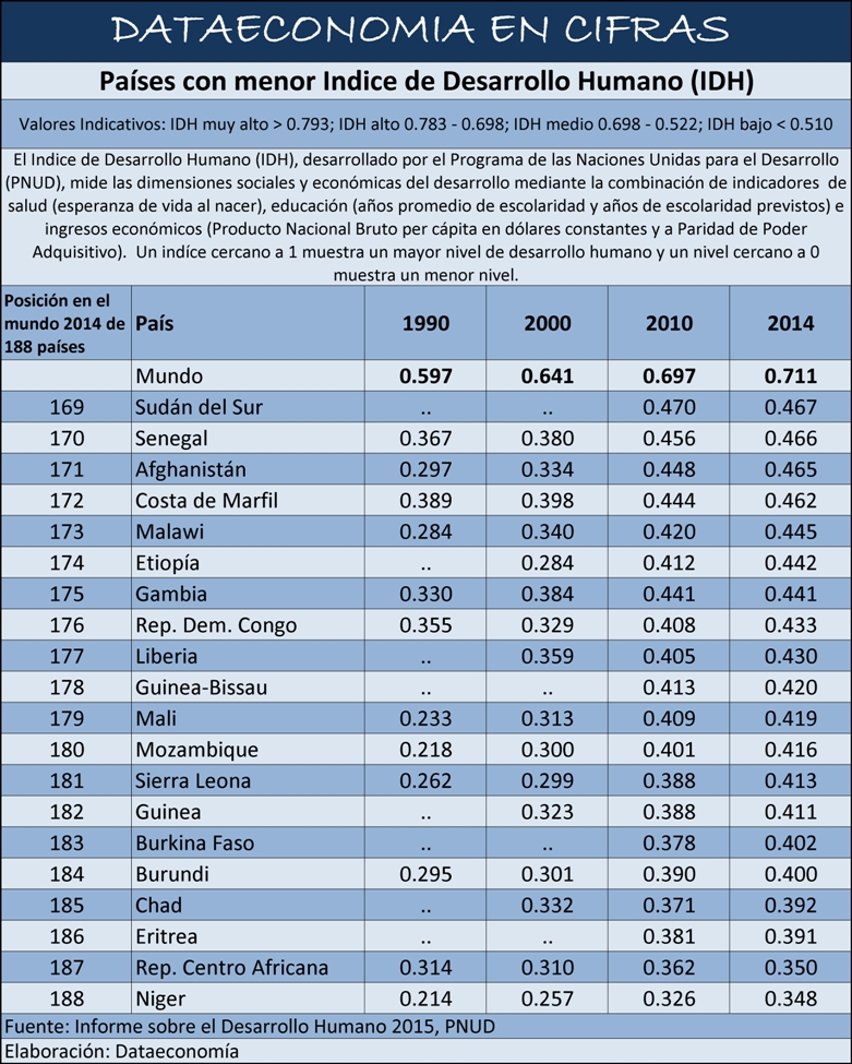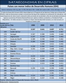 Gráfico Países con menor crecimiento de Indice de Desarrollo Humano 1990-2014