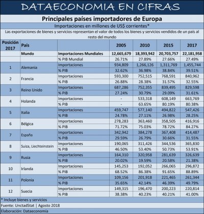 Principales países latinoamericanos de origen de importaciones de Alemania