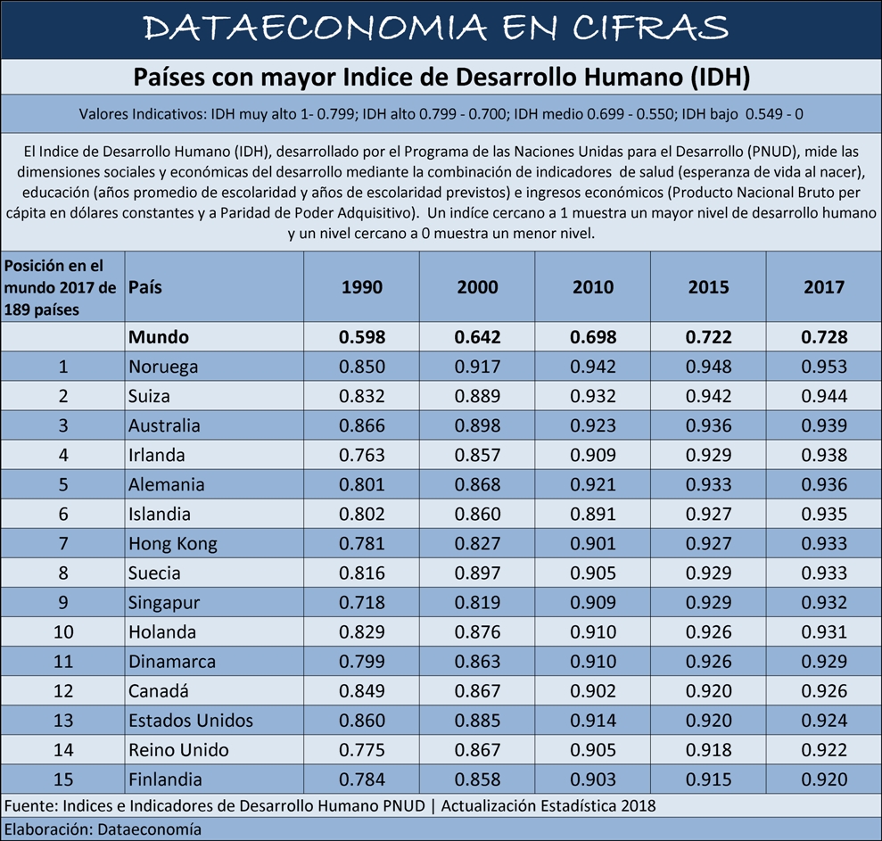 Países con mayor Indice de Desarrollo Humano en el mundo