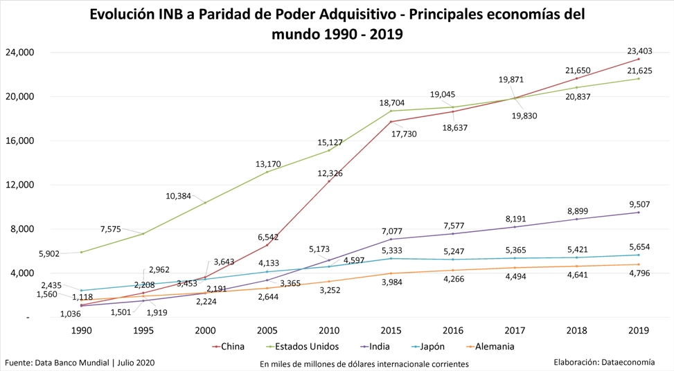 Principales economías del mundo medidas por INB a PPA