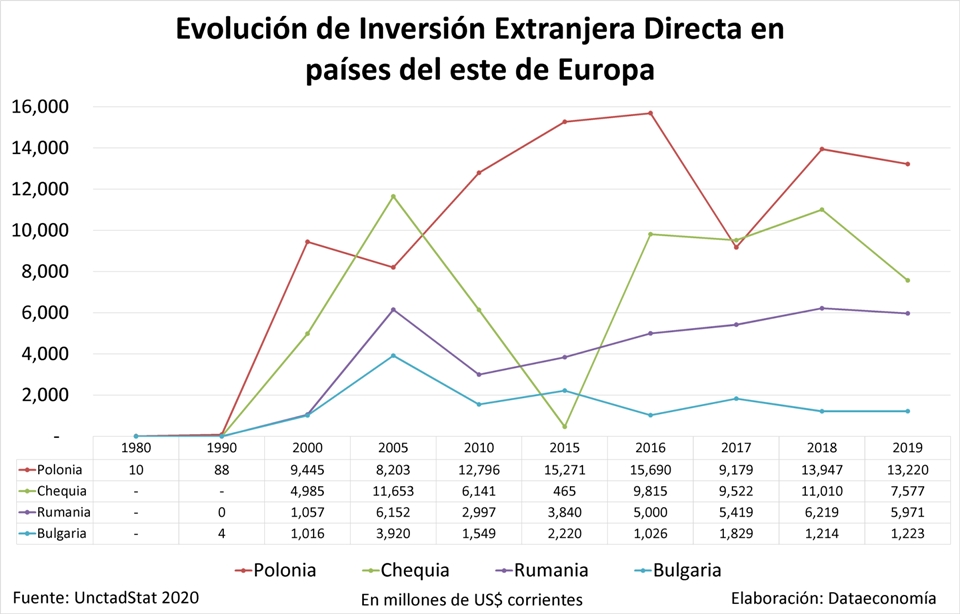 Evolución de Inversión Extranjera Directa en países del sur de Europa