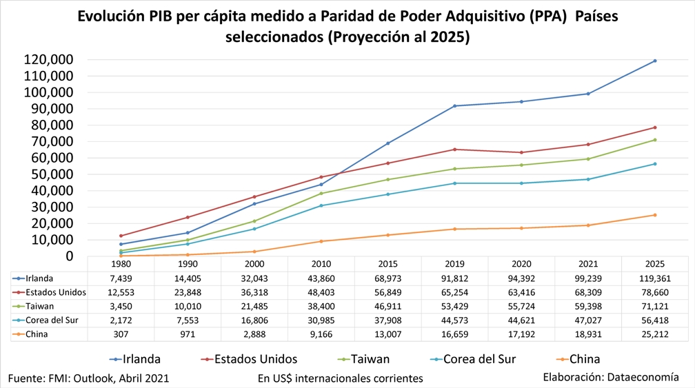 Evolución de PIB per cápita a PPA de economías seleccionadas