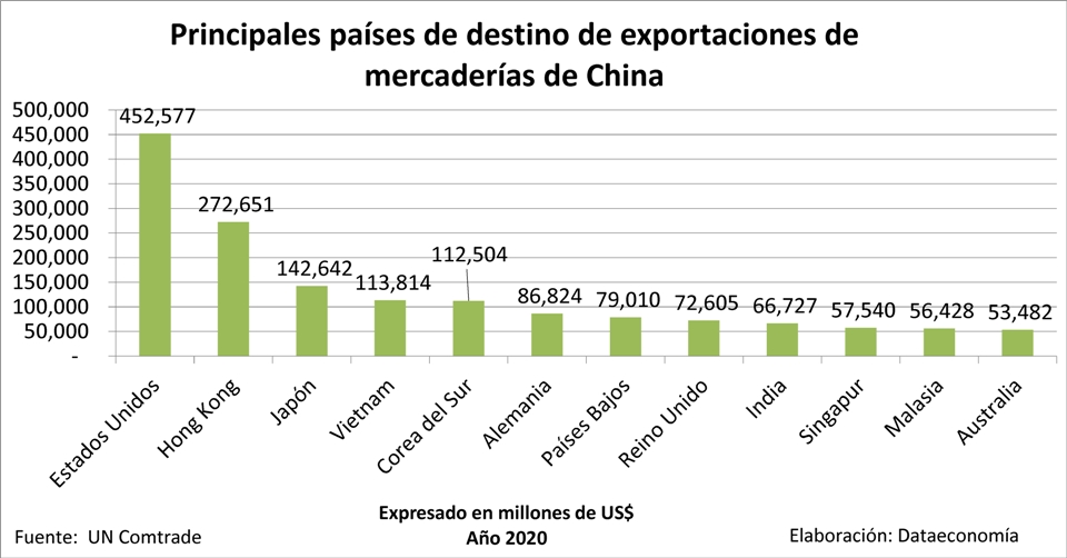 Principales países de destino de exportaciones de Estados Unidos