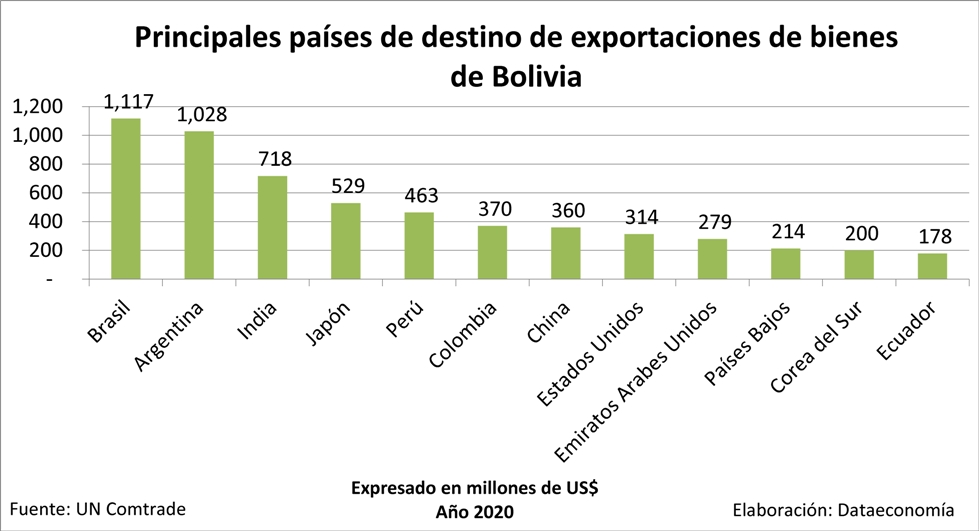 Principales países de destino de exportaciones de Brasil