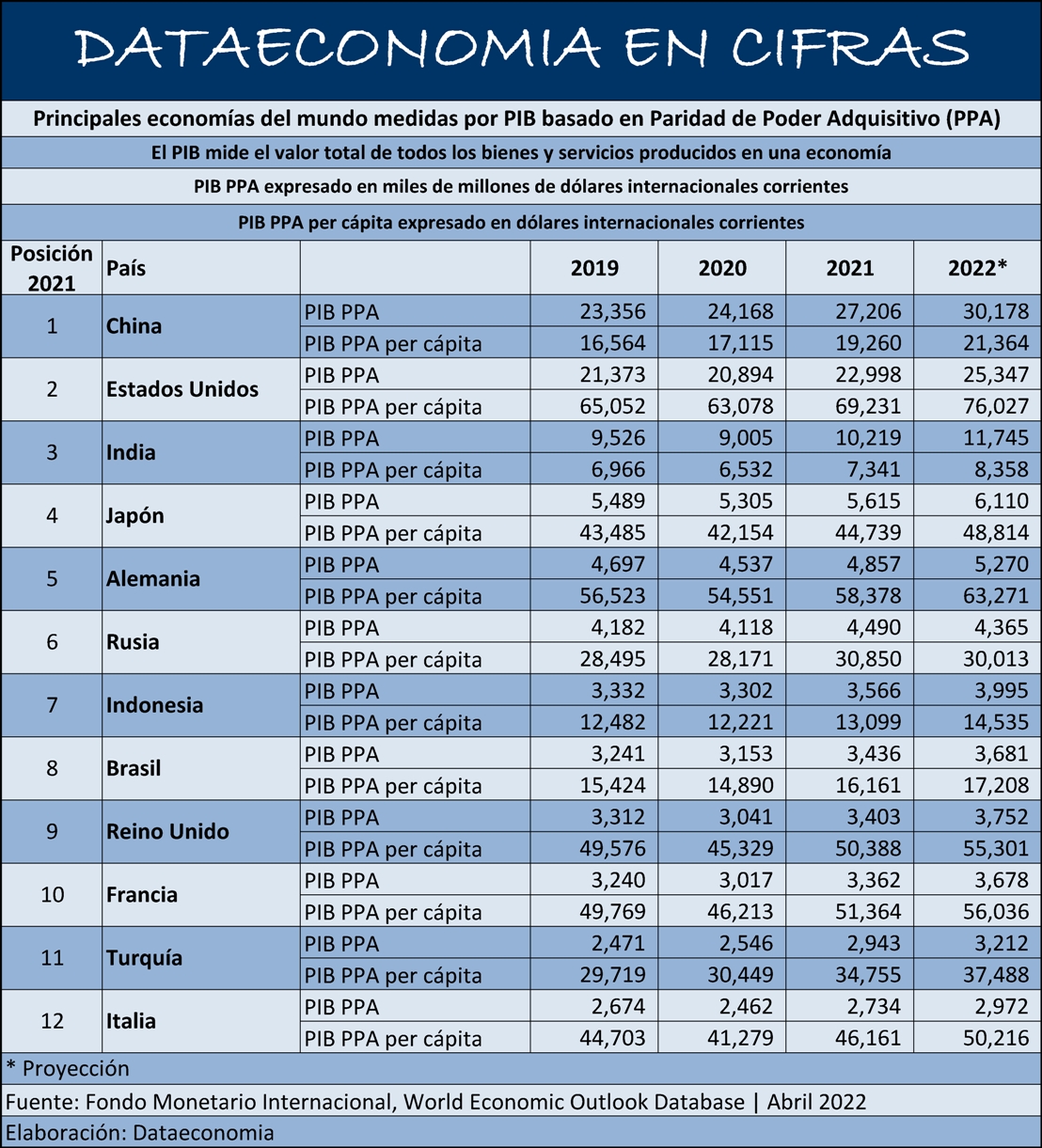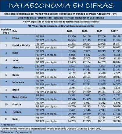 Principales economías del mundo medidas por PIB a Paridad de Poder Adquisitivo (PPA)